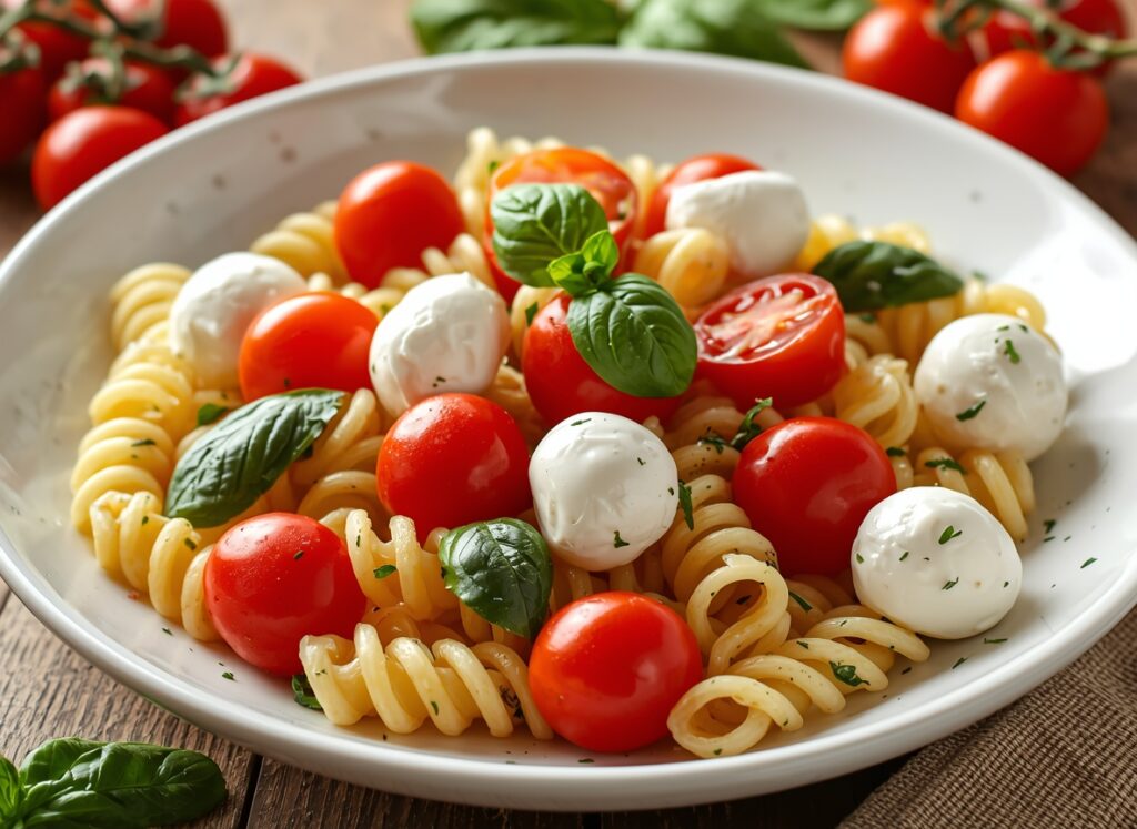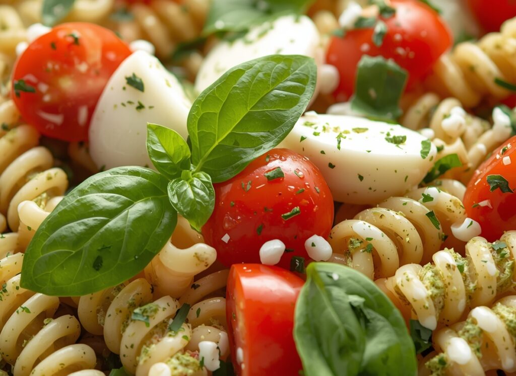 Pasta ties everything together. Rotini or fusilli hold the dressing well with their twists. Penne or farfalle offer bite-sized fun too. These shapes cradle tomatoes and cheese without slipping off.Caprese Pasta Salad Recipe