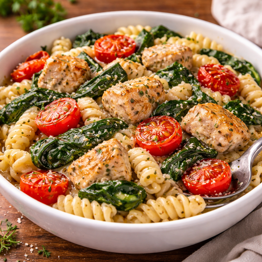 A great homemade chicken spinach tomato pasta relies on the harmony of its textures: succulent seared chicken, tender wilted spinach, and tomatoes that have been cooked just enough to release their juices without losing their shape. This guide provides a professional approach to an easy chicken spinach tomato pasta recipe, focusing on flavor layering and sauce emulsification to ensure a silky, flavorful finish every time.