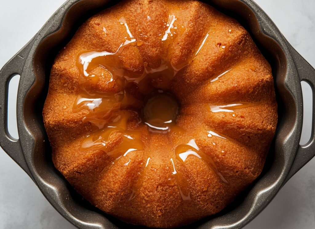 The glaze soaks into the cake, creating intense moisture and flavor.