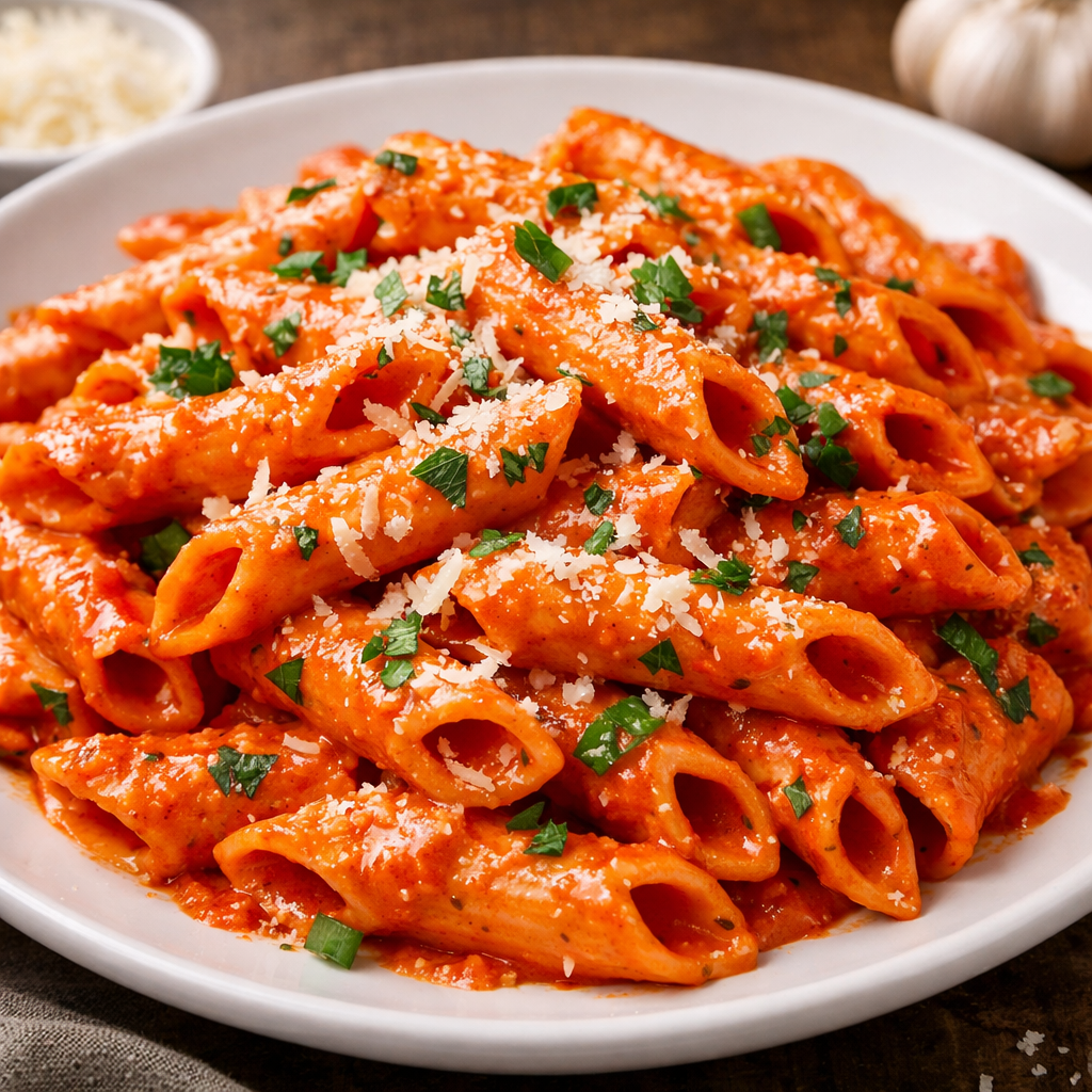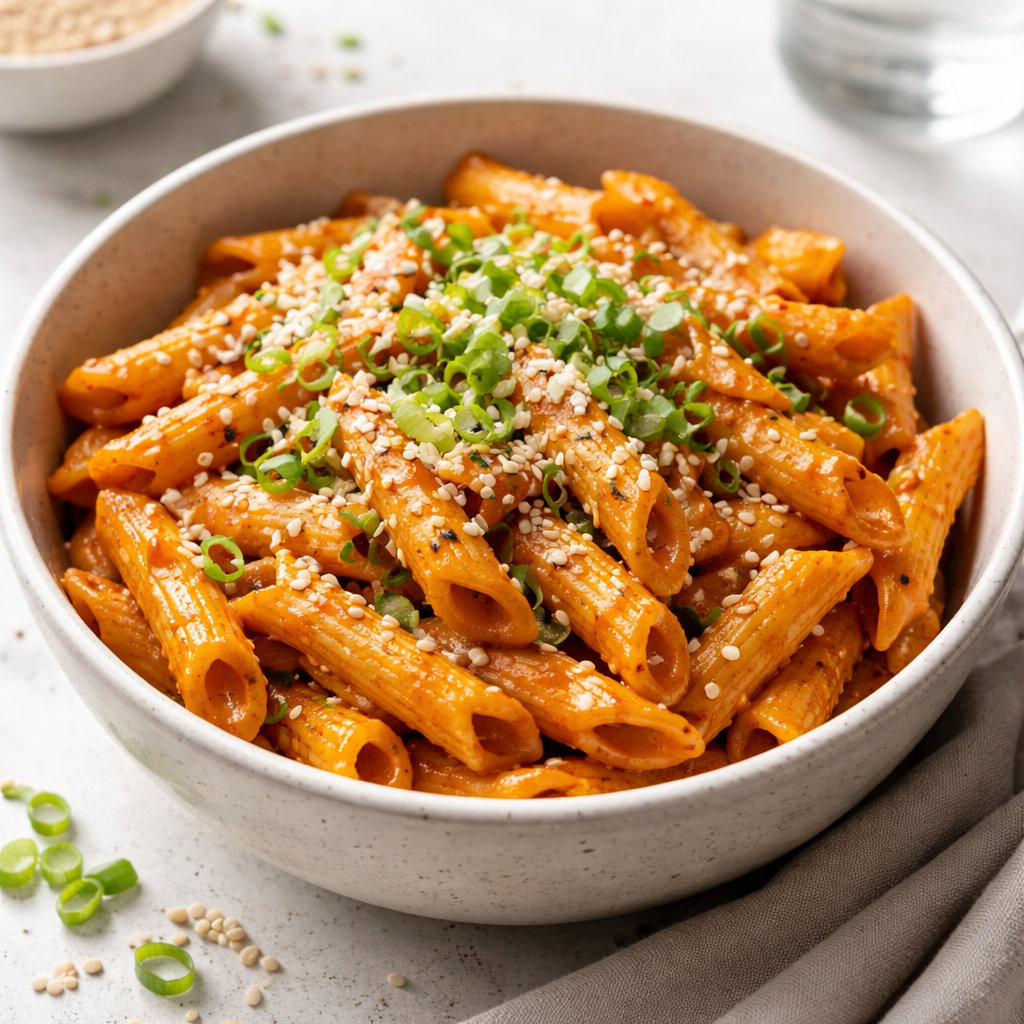 • Short Shapes: Rigatoni or Penne are ideal because the hollow centers trap the thick, Gochujang-infused cream.