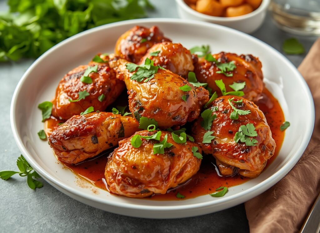 Shred the chicken right in the pot using two forks—it soaks up more sauce that way. Or serve whole for a fancier look.