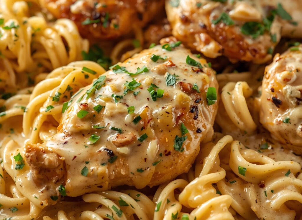 To reheat, place the chicken and sauce in a skillet over low heat. Add a tablespoon of chicken broth or milk to help loosen the sauce. Stir gently until warmed through; avoid boiling, as this may cause the cream to separate.