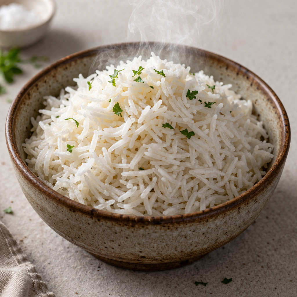 - Purity of Flavor: By using only water and heat, the natural fragrance of high-quality rice—such as the floral notes of Jasmine or the nuttiness of Basmati—is preserved without interference from oils or heavy seasonings.